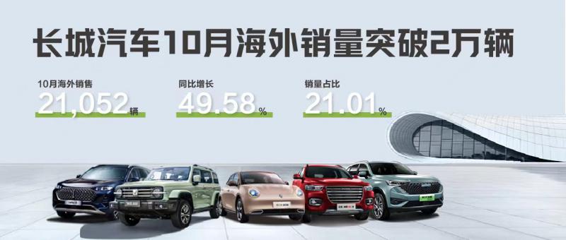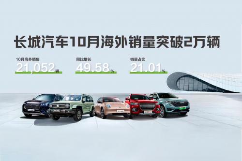 市场排名持续提升 长城汽车10月海外销售突破2万辆 创历史新高